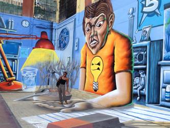 This photo was taken at Five Pointz in Long Island City, Queens about four months before the whole building was painted over in preparation for its sale. I don't know the woman standing on the hand, but I think this photo really highlights the large scale of this amazingly detailed ''graffiti" artwork.