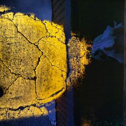 This is a photograph of a speed bump taken in a parking lot during last week's thaw. The reflection of the sky and nearby architecture in the puddle create a beautiful abstract composition. Being a a fine artist, I am always looking for interesting juxtapositions of color and texture as I walk around town. This image is the original photo - no Photoshopping.