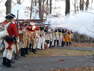 This is from a reenactment of the Battle of Fort Lee during the American Revolution. George Washington narrowly escaped, living to fight another day.