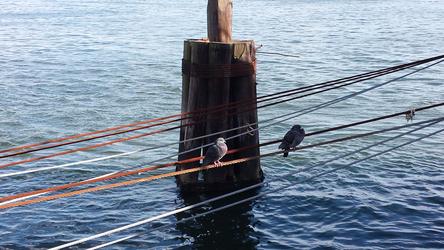 Walking the dog near 30th Street. First outing with new phone. These pigeons and this channel marker are achingly universal - I'm sure I've taken similar shots in Venice.