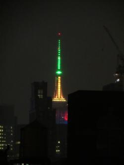 This is a photo of an illuminated Empire State Building a day after Nelson Mandela died. It was taken from our 75th Street apartment's living room window looking downtown.