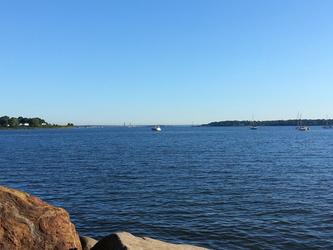 This is a spot I normally drive past on the Cross Island Parkway. The morning I took the shot I had just picked up my son after his 5:30 a.m. swim practice; we sat on the rocks to eat breakfast and enjoy this brilliant view of Little Neck Bay with Fort Totten on the left and the Great Neck shoreline on the right.