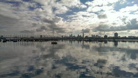 The photo was taken on the pier at St Kilda beach, Melbourne, Australia. I took it because I thought that the reflection of the city skyline in the water with the boats made a great artistic scene. What I like about it is that the reflective pattern of the clouds in the water was not all that apparent when I took the photo but just seem to magically crop up in the photo.