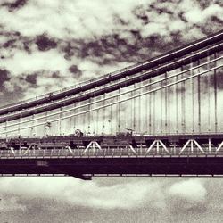 A slice of Manhattan Bridge, layered over a patch of cumulus clouds taken in from Brooklyn side of East River. It was a warm April afternoon and we were out foraging for food. Bridge was alive; with thunderous sounds of repair and with men that walked on its tight rope.