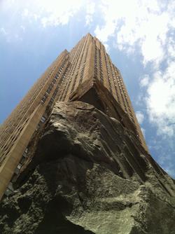 Taken at the exhibit of the multi-ton 'stone humans' by Swiss artist Ugo Rondinone at Rockefeller Center this year.