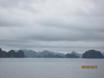 many years after the "American war", as they call it. this photo is in color, but early morning fog showed these limestone islands in shades of grey.