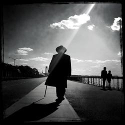 I was sitting on a park bench on the bike bath that runs alongside the Verrazano Narrows when this gentleman walked by. I like the light, and I like the Verrazano bridge in the background.