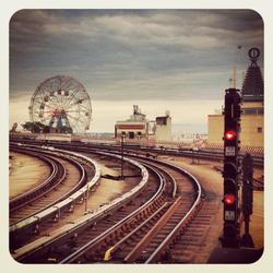 The first photo is taken from the Coney Island Subway Stop and look past the tracks to the iconic Wonder Wheel in the Distance. I like the composition, color balance and unique perspective on a cultural icon.