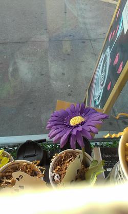 Artificial flower, drinking coffee(artificial optimism) in window seat at 112 st & BWay.