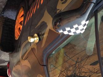 Taken yesterday on 188 Street in the Bronx, parked in a "teacher-only" parking space of a school; this guy must be popular with his students! I took the picture to show to my college-aged sons, and we are all wondering whether he can lock his car with the car key or not. On the hood underneath a glued-on Mercedes icon, a row of smiley face headlamps and a line of rubber duckies in graded sizes, it says, "HYBRID." It's a grand brand mash up!