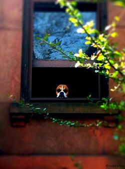 Walking down a side street in my Park Slope neighborhood, I noticed this dog watching the world go by.