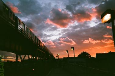 I took this photo in Corona Queens on the platform of the 103rd Street 7 train station. I took it with a disposable camera but I post all my disposable camera photos to Instagram through my cell phone. My Instagram can be found at @disposablenyc. I took it because I grew up riding the 7 train since I was a little boy and I liked how the sunset looks reflected off the train.