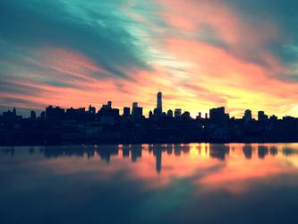 This sunset looking downtown from my East Village 7th floor apartment was so beautiful I had to capture it on film!!! The reflection you see isn't in water. I balanced my phone on my air conditioning unit to get that stunning reflection.