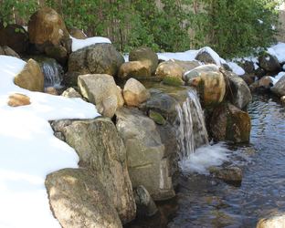 I took this picture in my backyard, a small third of an acre plot, where I had a waterfall, stream and pond constructed.I loved the way the newly fallen snow highlighted the rocks.