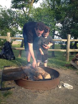 The man in this photo is the boyfriend of the boy's mother. 2013 was their first summer together. It appears the man is teaching the boy; however, it has been profoundly more balanced than meets the eye.