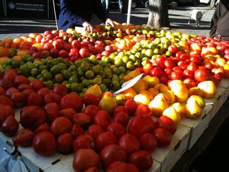 I was waiting for a friend at the Ft. Greene Farmers Market, marveling at the beautiful and bountiful offerings. The sun was beginning to peek through the trees, and it illuminated the already vibrant colors of these heirloom tomatoes.
