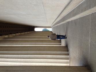 I took this photo of my husband at the Parthenon... in Nashville Tennessee. I like the feeling of space and the size of the architecture, and I like that the sweatshirt my husband was wearing happens to blend nicely with the color of the building. Last but not least, it reminds me of what a fun trip we had visiting our friends in Tennessee!