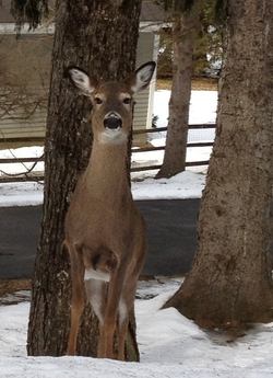 I took this from the window of my mom's car, driving through Somers, NY. I was shocked how close we got, and how long he/she stood looking at us.