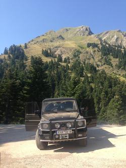 On our way to Panta Vrexei-Eyrytania, Greece, we made a few pit stops here and there to take photos of the beautiful scenery all around us. I love how blue the sky is and how green the trees and mountains are. It's such a clean appearance, and then there's the car with dirt all over it from traveling through unpaved roads up the mountains.
