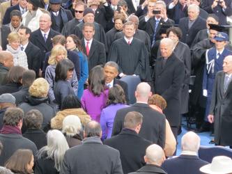 I took this photo on the platform during President Obama's 2nd Inauguration. I took this photo as President Obama greeted his daughters as he entered the platform. I like this photo because you can see both Biden's and Obama's families AND the nine justices of The Supreme Court. I took the photo because I doubt I will ever be as up close to history in the making again.