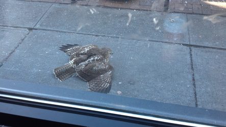 This was a hawk that hit the Starbucks window I was sitting by. He shrugged it off and proceeded to attack some pigeons nearby. You can't get a sense of how large he was, but he was just majestic (for Queens, NY anyway!)
