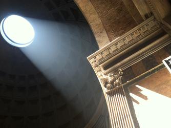 I was studying architecture in Rome, Italy last semester and had heard of a little-known event at the Pantheon where the sunlight from the oculus aligns with the arch over the entrance portal on April 8th at 1pm. (Adjust for daylight savings and exchange the Gregorian calendar for the Roman one, and it happens at noon on April 21, the celebrated birth date of Rome).