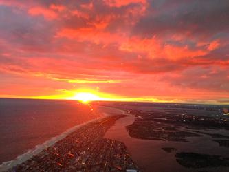 Crossing the shoreline at Long Beach NY at sunset while coming into land at JFK. October 2014