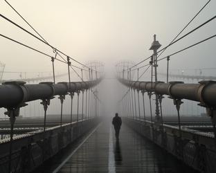 I bike into the city a couple times a week at 6:15am all year and took this on a foggy, wet January morning heading back into Brooklyn from Manhattan. The weather made for a lonely bridge.