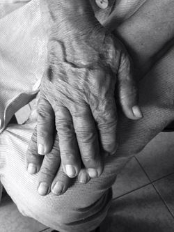 These are my mother-in-law's hands. She is 90 and lives in Neiva, Colombia. She was widowed with 8 children at the age of 42. She learned various weaving techniques and sold handicrafts to keep her family fed and clothed. She never remarried. All of her children finished college and are now professionals. This photo represents all she did by the use of her hands to raise 8 children in the face of adversity.