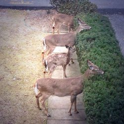 Deer are common in southern Westchester, and I was thrilled to have my iPhone with me when I looked out a window to see these deer lined up at the buffet on my front path