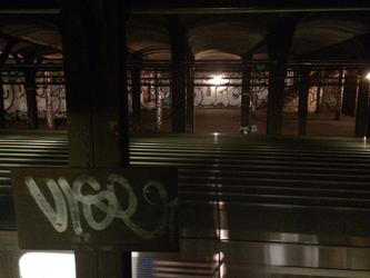 1 train stopped in tunnel waiting for uptown express to pass near 96th street station.