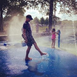 At just the right moment, on a hot summer day, I caught this big kid unabashedly playing in the water spray ground at Harbor Island Park. (Mamaroneck, NY)
