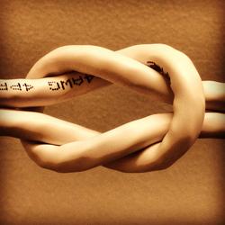 Square Knot on Ethernet Cable, taken by Liam Johnston on March 4, 2014, is a photograph of a three dimensional doodle created by the photographer during a boring business conference call in an office somewhere in Midtown Manhattan, New York.