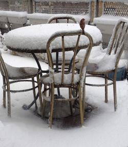 At the last snow of a seemingly endless winter last Feb/March, a hopeful sign appeared on our terrace: a warbling red-throated finch. Luckily, I had my iPhone in hand.