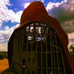 We The People: Prison Cell with Hoodie (Interpretation of Danh Vo), taken by Liam Johnston on August 17, 2014, is a photograph of a Dah Vo sculpture exhibited as part of the Public Art Fund's We The People installation at Brooklyn Bridge Park in Brooklyn, New York.