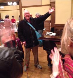 this person burst into song after listening to our choir sing carols at his soup kitchen. he looks so happy.