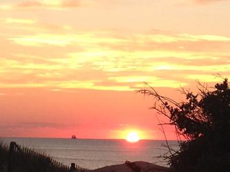 My friends and I rushed to catch the sunset on the first day of our vacation. This sailboat drifted in to view just as I snapped this picture with my iPhone 4S.