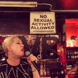 I took this photo of Mx Justin Vivian Bond doing an impromptu musical performance at The Cock in the East Village. That night The New York Performance Artists Collective (NYPAC) was holding a benefit in Mx Bond's honor Oct 22, 2014;,Mx Bond decided to get on top of the bar and serenade us with a medley of songs and the content of several whiskey glasses. (I -swear- this was the only reason I was at The Cock.)