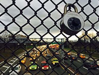 A "love lock" on a Grand Central Parkway overpass in Forest Hills; leading to Meadow Lake, Flushing Meadows-Corona Park. Taken last week with my new iPhone 6