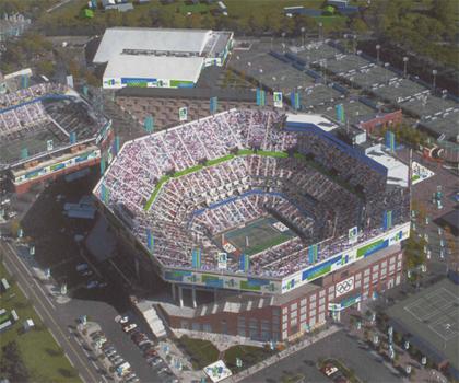 Runners would be sprinting in an Olympic Stadium overlooking either the Hudson River or Flushing Bay.