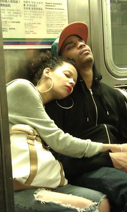 There was once a book and a movie and a play whose title stuck with me: Subways are for Sleeping. In that spirit, I always try to photograph people catching a few winks while in transit. There is a second picture I will send separately.