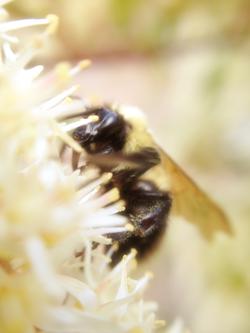 I took this photo while my girlfriend and I were helping move some things from a farmhouse in Glen Gardener NJ. There was this nice, semi-wild flowing bush near the garage doors with a whole host of bumble bees on it. Always looking for good macro shots, I pulled out my little Olloclip iPhone lens and started snapping photos.