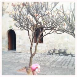 The end of a lovely day intersected with the end of the flowering season for these gorgeous ancient trees. I took this shot because I was moved by the bleached light of the courtyard punctuated by the pink and the mirrored forms of the trees and the little girl bent over to collect their fallen blooms.