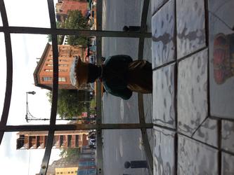This photo was taken looking out the window at Two Boots Pizza in the West Village. I was spending the day in the city with my girlfriend and we went in to grab pizza on a whim! I used to work near Two Boots and go there a lot so it's a place with happy memories for me. I also love the picture because you get a glimpse of the city from the inside out!