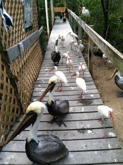 This is at the bird rehabilitation center in Tavernier, Key Largo, Florida. They thought they were about to be fed.