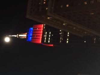 I took this coming out of the Macy's on 34th Street. My mother happened to be visiting at the time too, so it was a special moment indeed. The red, white, and blue next to the full moon was awesome.