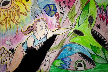 My art teacher found this competition and asked us all to create a drawing that we could submit to this competition. It took me a while to come up with an idea of what to do, but the idea of the girl fighting with a Japanese sumo wrestler came to me out of the blue, so I went with it. I ended up feeling very proud of it, and I hope y'all do too!