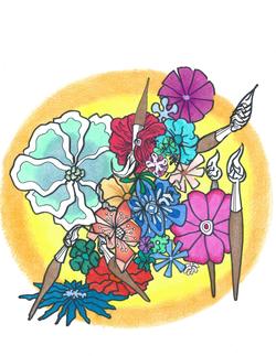I painted the woman and bird this year and thought the addition of the doodle drawing echoed my figure and added extra whimsy to both artworks.