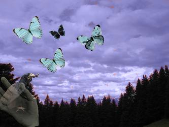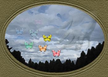 My picture shows a butterfly flying through the sky on its journey through life. It symbolizes freedom and happiness in life. The butterfly represents a person. As it flies across the sky, the butterfly grows and changes like a person going through life. Like the butterfly, people are free and can choose their own path. The sun is bright and lively and shows the happiness of life.