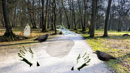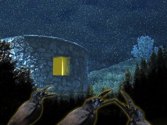 The local Crow killer is sneaking up on the sentinels of the ghost in the road. The beautiful widow of the ghost has summoned the butterflies with her music to thwart the Crow killer and keep her ghost in the road.